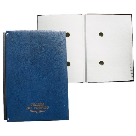 WARTA Teczka do podpisu z harmonijką. Okładka twarda, oprawiona w okleinę powleczoną PVC, z gąbką. Grzbiet harmonijka. Łączenie okładki z blokiem wzmocnione nitami. Blok z kartonu barwionego. Zawiera 20 kart z 2 otworami