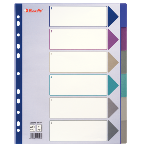 Przekładki plastikowe A4 Maxi ESSELTE | 6 przekładek | 20647