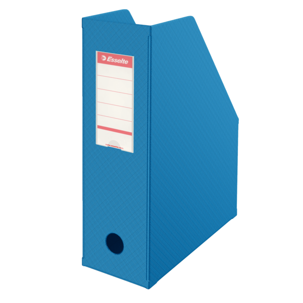 Składany pojemnik na czasopisma Esselte to praktyczne rozwiązanie do przechowywania dokumentów, katalogów i czasopism w biurze, domu lub archiwum. Jego elegancki wygląd przypomina klasyczny segregator Esselte, a jednocześnie nie wymaga dziurkowania dokumentów.