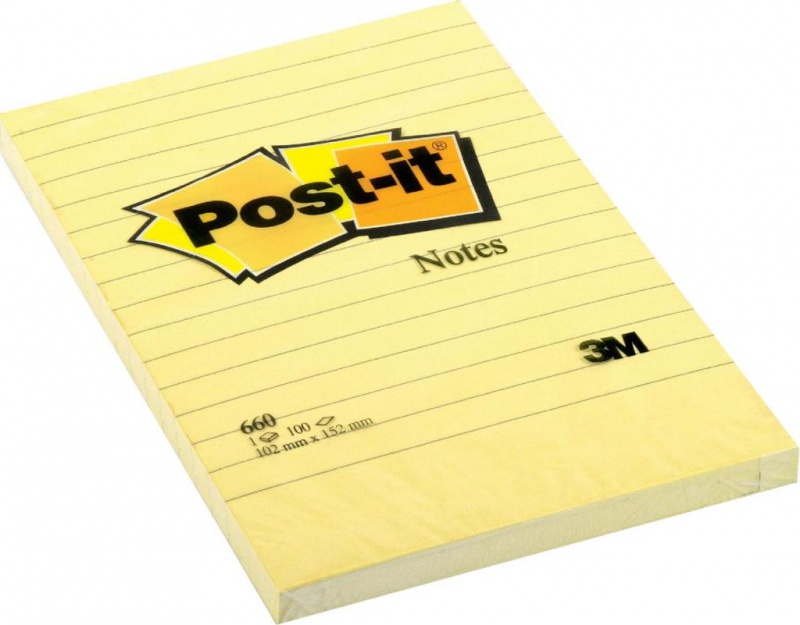 660 Bloczek samoprzylepny Post-it® w linie, - żółty, - 100 kartek, 102 x 152 mm- jednostka sprzedazy 1 sztuka