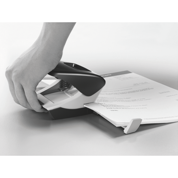 Dziurkacz Leitz NeXXt został zaprojektowany tak, aby umożliwiać wygodne dziurkowanie w ręku. Niewielkie rozmiary i ergonomiczny uchwyt sprawiają, że urządzenie idealnie nadaje się do użytku podczas pracy mobilnej, w domu lub na wyjazdach.
