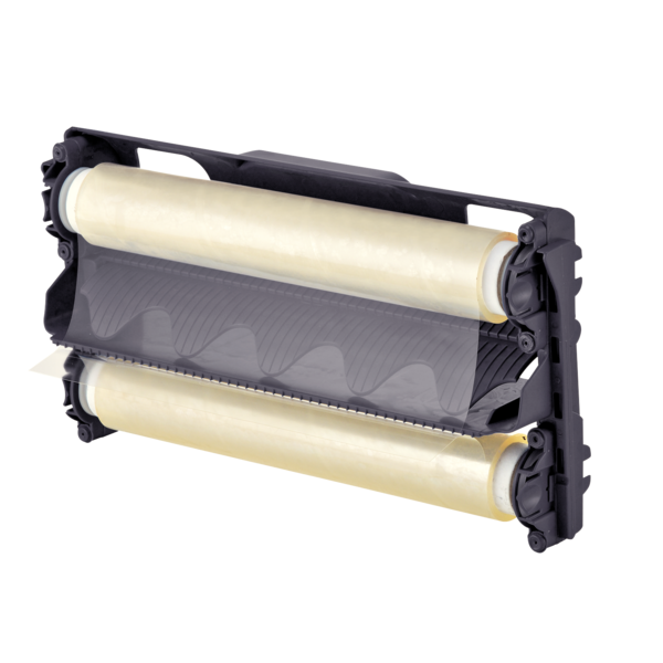 - Opatentowany system łatwej wymiany rolek — szybkie zakładanie folii do laminowania na zimno.