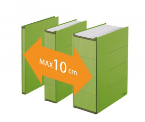 Szerokość skoroszytu zwiększa się proporcjonalnie do ilości przechowywanych dokumentów, co pozwala znacznie oszczędzać przestrzeń w biurze lub archiwum. Produkt jest również przystosowany do przechowywania dokumentów w koszulkach ochronnych.