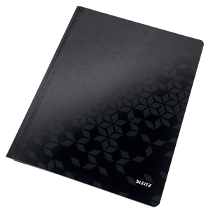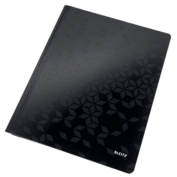 Efektowny skoroszyt kartonowy Leitz WOW w czarnym kolorze to stylowy i praktyczny produkt do codziennej pracy z dokumentami. Wykończony połyskującą, wzorzystą powierzchnią, podkreśla wysoką jakość wykonania i dodaje elegancji miejscu pracy.