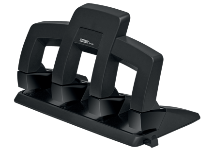 Dziurkacz RAPID SP34 4 dziurki | 30 kartek. Dziurkacz z 4 ostrzami, wyposażony w innowacyjną technologię Rapid Press Less™, która pozwala zredukować o 50% siłę nacisku niezbędną do dziurkowania w porównaniu do dziurkaczy tradycyjnych.