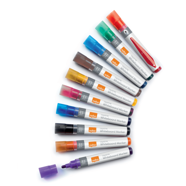 Marker do białych tablic NOBO Liquid Ink | 10 sztuk. Usuwalne markery do tablic suchościeralnych znakomicie sprawdzą się w codziennym użytkowaniu. Są bardzo wszechstronne - można je stosować na tablicach suchościeralnych i innych nieporowatych powierzchniach, np. szklanych czy ceramicznych. Szybko schną i można je łatwo usunąć za pomocą suchej szmatki. Wygodne okienko umożliwia sprawdzenie poziomu płynnego tuszu, dzięki czemu nie zabraknie Ci go w markerze w kluczowym momencie. Dostępne są w różnych kolorach, co pozwoli Ci realizować wszelkie zadania związane z prezentacją. Idealnie sprawdzą się w szkole, biurze i w domu. Opakowanie zawiera 10 markerów suchościeralnych z okrągłą, 3-milimetrową końcówką zapewniającą wyraźne, gładkie linie. Używając ich z tablicą suchościeralną Nobo, osiągniesz optymalne efekty. Marker suchościeralny z łatwo przepływającym płynnym tuszem zapewnia mocny i intensywny kolor, dobrze widoczny na tablicy suchościeralnej. Wygodne okienko ułatwia sprawdzenie poziomu tuszu. Odpowiednie do używania na większości nieporowatych powierzchniach suchościeralnych, w tym na szklanych, ceramicznych i melaminowanych tablicach suchościeralnych. Okrągła, 3-milimetrowa końcówka. W opakowaniu 10 markerów suchościeralnych. Jednostka sprzedaży 1 opakowanie - 10 sztuk.
