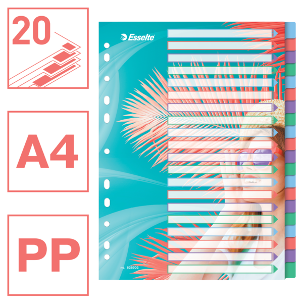 Przekładki PP A4 Esselte Colour"Breeze | 20 przekładek