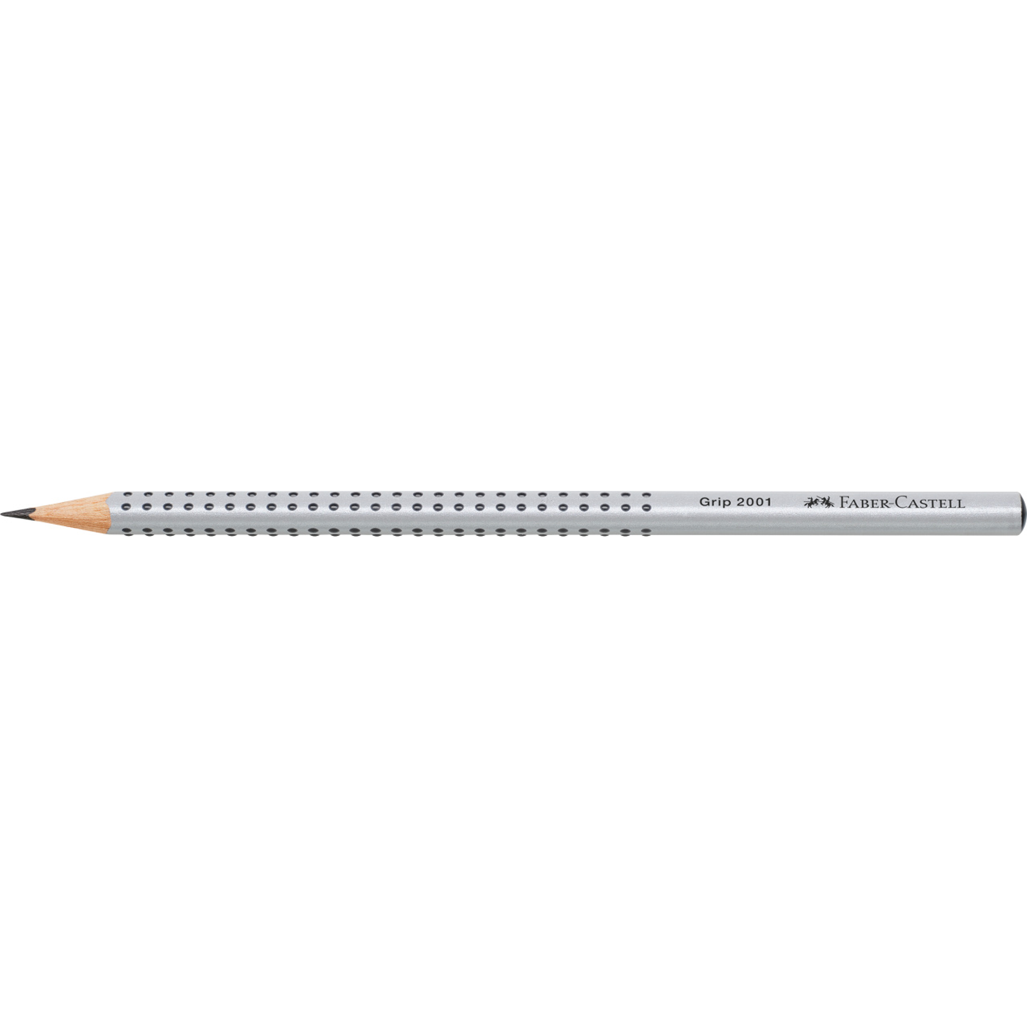 Ołówek Faber-Castell GRIP 2001/B. Ołówek grafitowy Grip 2001 Faber-Castell w kolorze srebrnym. Nawet w czasach zdominowanych przez komputery, telefony i internet, ołówek wciąż pozostaje nieodłącznym towarzyszem codzienności. To doskonałe w swojej prostocie narzędzie. Ergonomiczny trójkątny kształt i charakterystyczna dla tej serii opatentowana strefa Grip z małymi, antypoślizgowymi punktami zapewniają wysoki komfort użytkowania i niemęczące, wygodne pisanie i szkicowanie. Odpowiedni również dla leworęcznych. Z odpornym na pękanie grafitem o stopniu twardości B, dzięki bezpiecznemu procesowi wiązania (SV). Wykonany z certyfikowanego drewna pochodzącego ze zrównoważonego i odpowiedzialnie zarządzanego leśnictwa. Powierzchnia pokryta lakierem na bazie wody _ bezpiecznym dla środowiska i zdrowia dzieci. Produkcja neutralna pod względem emisji dwutlenku węgla.
