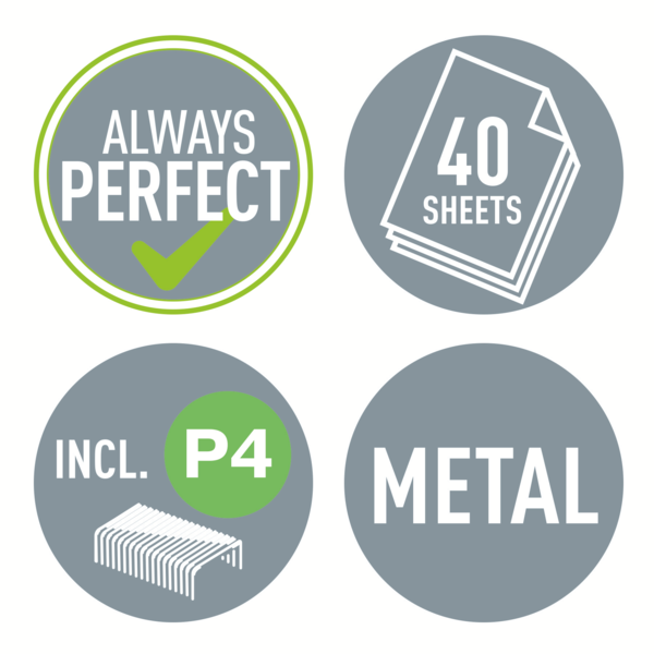 - Zszywa do: 4 mm / 40 kartek (80 gsm)