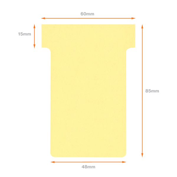 Trwale karteczki do planerów T-card. Rozmiar 2 ( 48 x 60 x 85 mm ). Kolor żółty. W opakowaniu 100 sztuk.