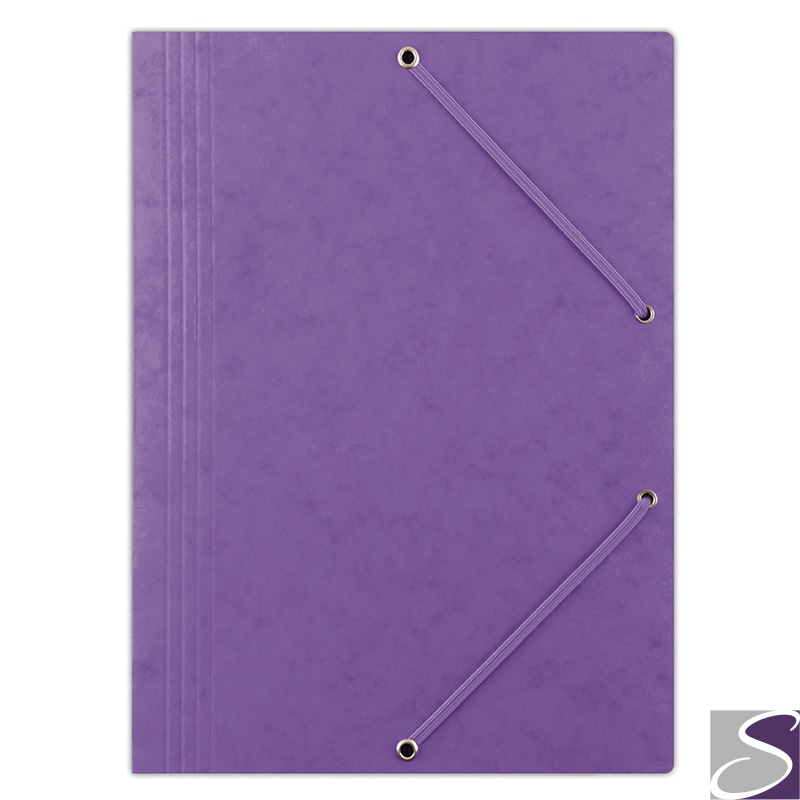 wykonana z kartonu o gramaturze 390gsm, powlekanego woskiem_posiada Zielony Punkt (Der Gr_ne Punkt) - udział w systemie recyklingu i odzysku odpadów wynikający z przepisów prawa polskiego i UE_3-skrzydłowa_preszpanowa_zamykana za pomocą 2 płaskich, narożnych gumek w kolorze teczki_format: A4_rozmiar: 235x319mm_kolor fioletowy
