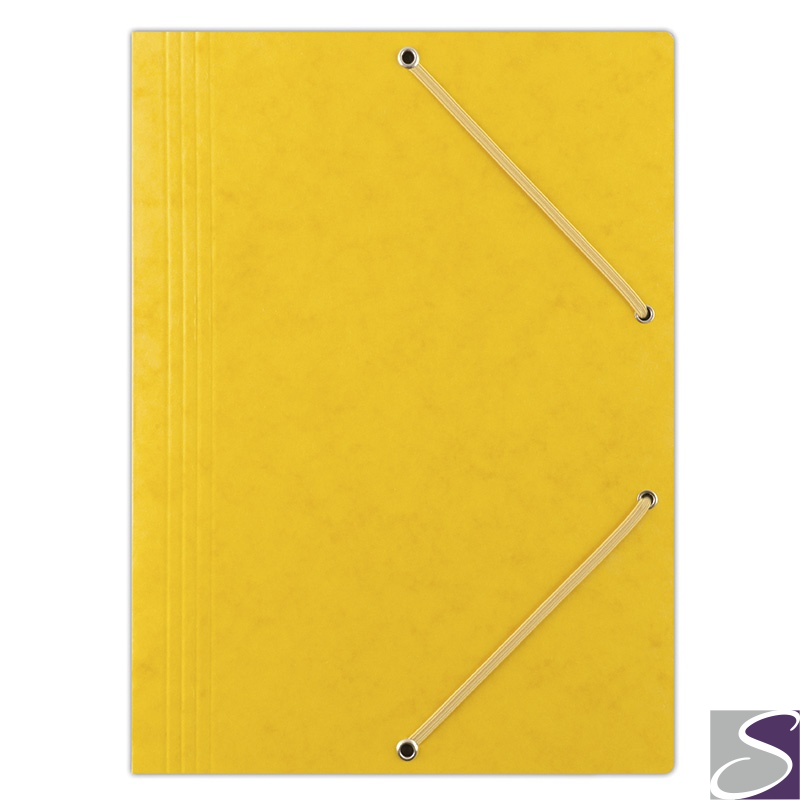 wykonana z kartonu o gramaturze 390gsm, powlekanego woskiem_posiada Zielony Punkt (Der Gr_ne Punkt) - udział w systemie recyklingu i odzysku odpadów wynikający z przepisów prawa polskiego i UE_3-skrzydłowa_preszpanowa_zamykana za pomocą 2 płaskich, narożnych gumek w kolorze teczki_format: A4_rozmiar: 235x319mm_kolor żółty