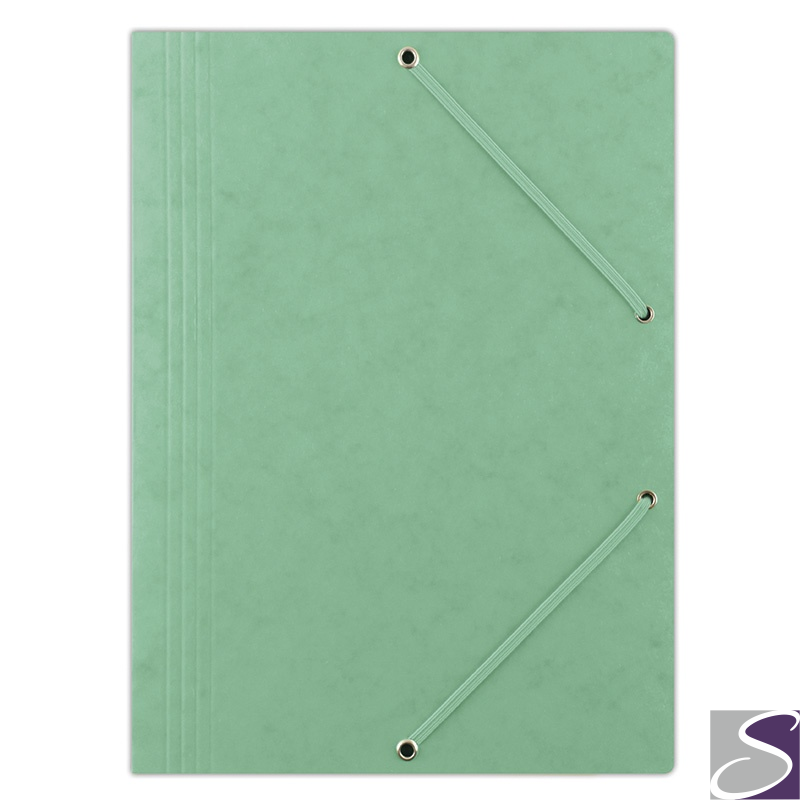 wykonana z kartonu o gramaturze 390gsm, powlekanego woskiem_posiada Zielony Punkt (Der Gr_ne Punkt) - udział w systemie recyklingu i odzysku odpadów wynikający z przepisów prawa polskiego i UE_3-skrzydłowa_preszpanowa_zamykana za pomocą 2 płaskich, narożnych gumek w kolorze teczki_format: A4_rozmiar: 235x319mm_kolor zielony