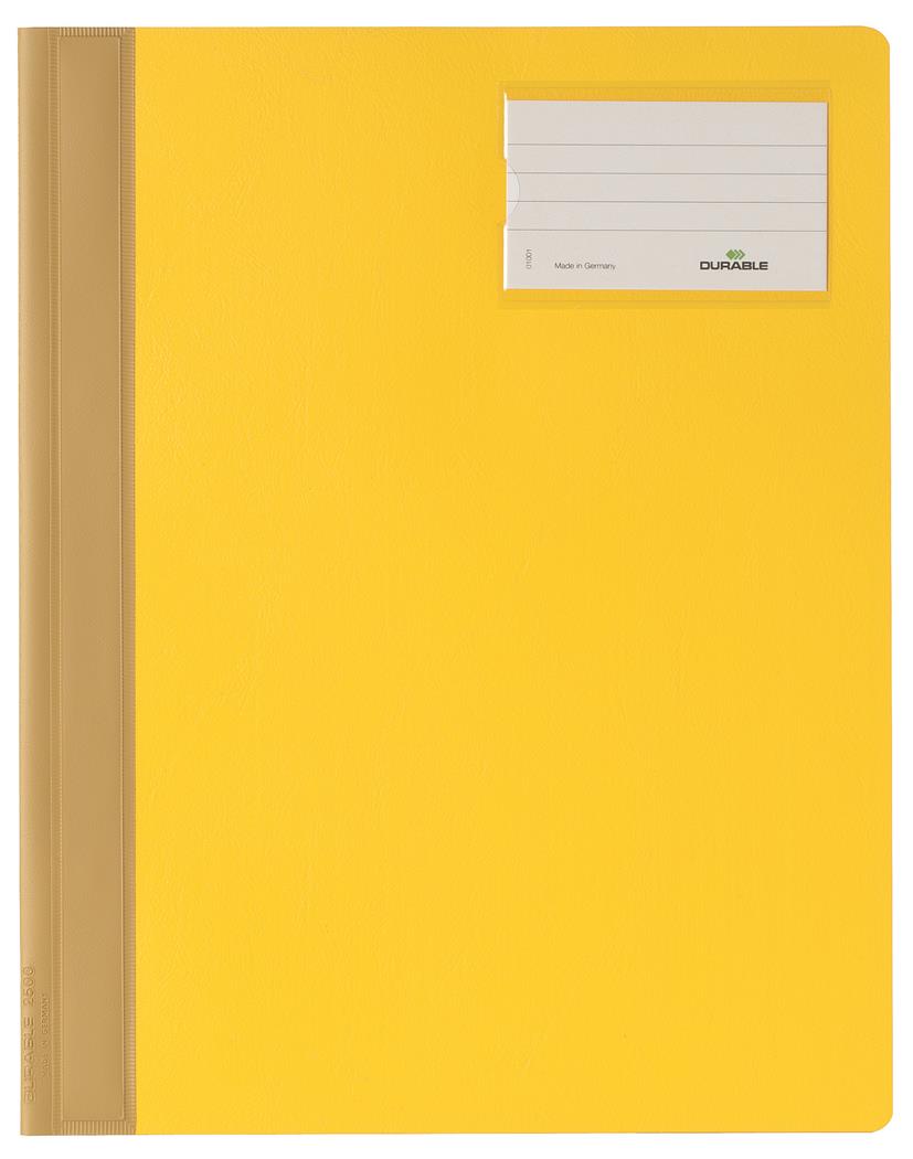 Skoroszyt z twardej folii. Mechanika skoroszytowa z tworzywa sztucznego ze specjalnymi zakończeniami, przezroczysta kieszeń wewnętrzna na tylnej okładce. Z okienkiem do opisania w formacie wizytówek (57 x 90 mm) na przedniej okładce. Możliwość umieszczenia szyny do zawieszenia 1531. Specjalna szerokość do koszulek na dokumenty.