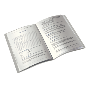 Album zawiera 20 przezroczystych koszulek przymocowanych do grzbietu, które umożliwiają przechowywanie do 40 kartek A4 (po 2 kartki w każdej koszulce), a etykieta na grzbiecie ułatwia opis zawartości i szybkie odnajdywanie potrzebnych materiałów.