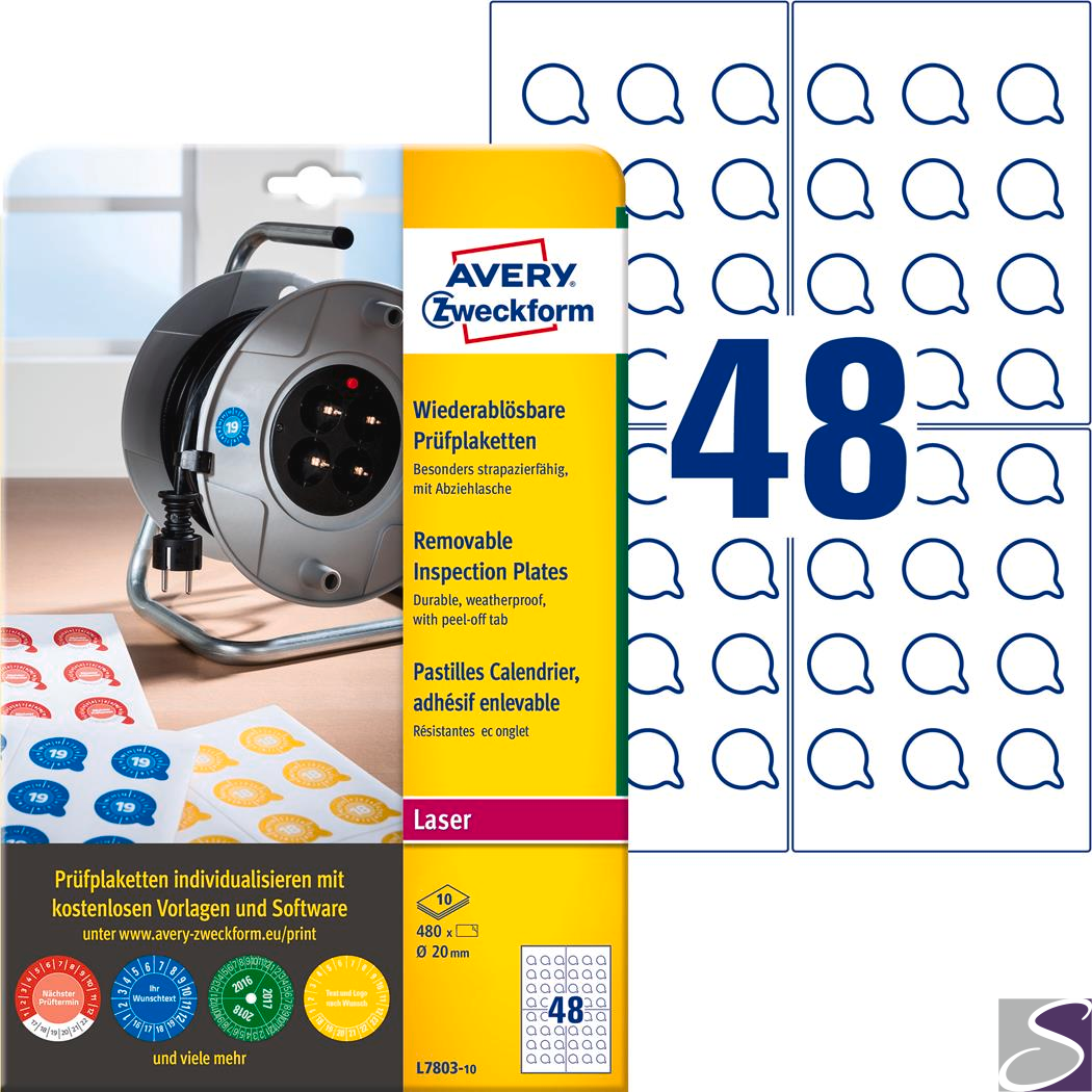 Usuwalne tabliczki inspekcyjne L7803-10 Q20 10ar Avery Zweckform (X)