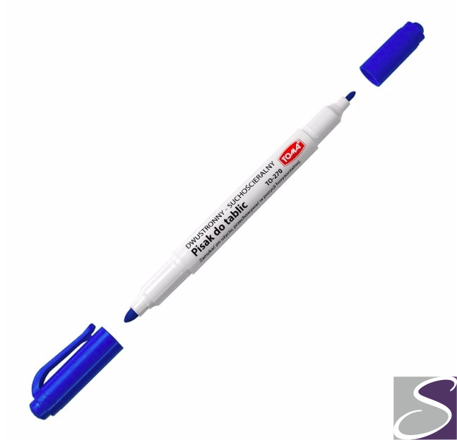 Pisaki 2-stronne do białych tablic TOMA, 2 końcówki cienkie 0,5 i 0,8mm, niebieski TO-270 Toma