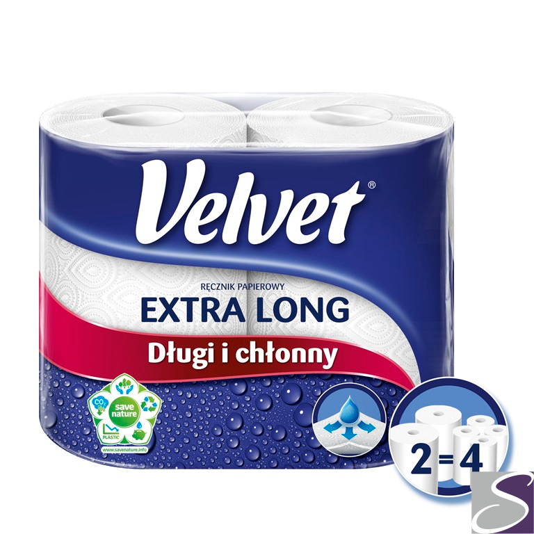 Ręcznik w roli Velvet Extra Long Biały 2 rolki 100% celuloza