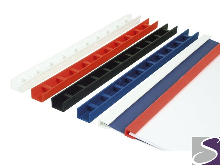 Listwy zatrzaskowe Greenbindery__ jednoelementowe, składane listwy plastikowe do oprawy dokumentów_ mocowane ręcznie na przedziurkowane bindownicą kartki_ zatrzaski, pewnie trzymające oprawiany dokument_ możliwość otwierania i zamykania listwy w celu dodania lub wyjęcia kartek_ rozmiar: 5, 10, 15, 20, 25 mm_ opakowanie 50 sztuk_ kolory: biały, czerwony, niebieski, czarny