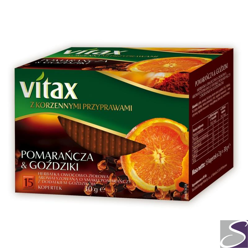Herbata VITAX owocowo-ziołowa, pomarańcza i goździki, 15 kopert, 060453