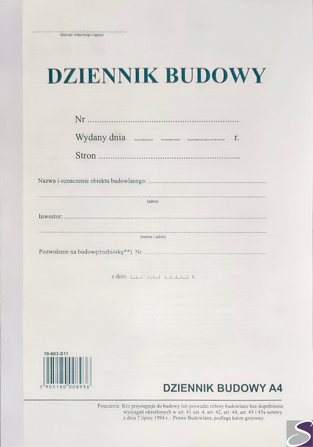 Dziennik budowy A4, 20 stron offset, 10-603-S11 DOTTS.