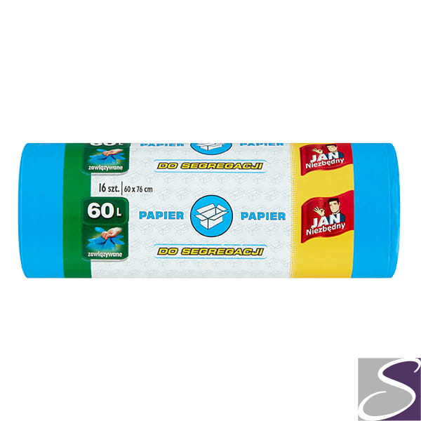 JAN NIEZBĘDNY Worki HD Easy-pack niebieskie wiązane 60l 16 szt. do segregacji papier 40760