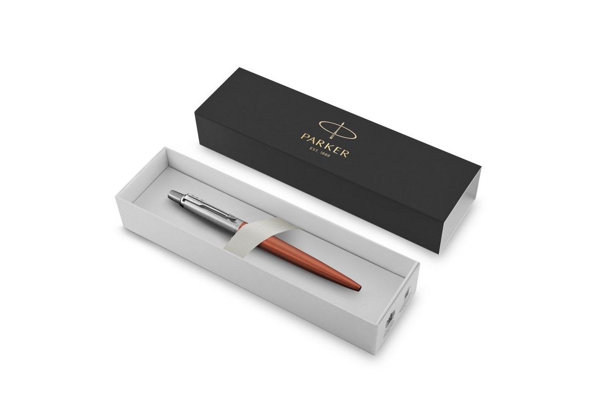 Długopis PARKER Jotter Chelsea Orange CT 1953189. Smukły długopis Jotter w pomarańczowym kolorze o klasycznym wyglądzie. Idealny dla wszystkich osób, które cenią dobry smak i minimalistyczny styl. To dobry wybór dla wszystkich osób, które rozpoczynają przygodę z marką Parker. Długopis nadaje się do codziennego użytku. Korpus wykonany został mistrzowsko ze stali nierdzewnej. Dolna część składa się ze szlachetnej stali pokrytej pomarańczowym lakierem. Wyposażony jest w przyciskowy mechanizm wysuwania wkładu QUINKFlow, który zapewnia swoim użytkownikom unikalną gładkość pisania. To idealny stosunek jakości do ceny.