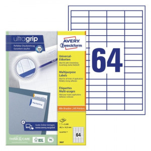 Etykiety uniwersalne AVERY ZWECKFORM A4 48.5 x 16.9mm | 100 arkuszy | 64 etykiety/str.