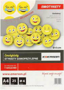Etykiety EMERSON Emotykiety A4 Kółka 40mm Mix | 25 arkuszy