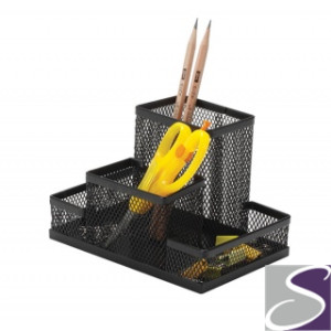 Przybornik na biurko siatka metalowy 4 komory czarny 153x103x100mm KF15112