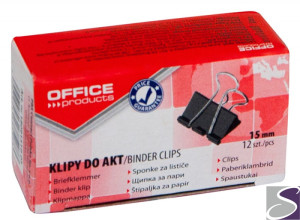 Klipy do dokumentów OFFICE PRODUCTS, 15mm, 12szt., czarne 18091519-05