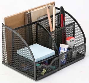 Przybornik na biurko z szufladka siatka czarny