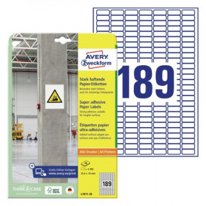 Etykiety Avery Zweckformdo 25.4x10mm L7871-20 | 20 arkuszy | 189 etykiet
