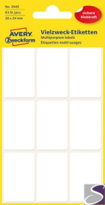 Białe minietykiety do opisywania ręcznego, 63 etyk./op., 38 x 24 mm, białe, AVERY ZWECKFORM, 3045