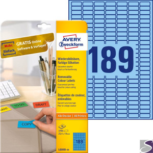 Etykiety usuwalne L6048-20 25,4 x 10 20 ark. niebieskie Avery Zweckform